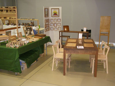 山本家具製作コーナー全景 お馴染のダイニングセットと小物たち |