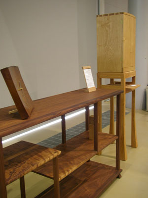手前:ウォルナットの違い棚 奥:クリのお厨子 |