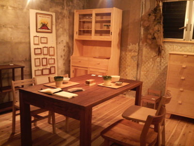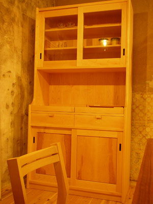 本展示会の目玉 メープルの食器棚。白くて清潔感のある材です。 たくさんのご来場ありがとうございました。 |