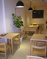 明るい雰囲気の店内 椅子とテーブルは山本家具製作の製品です。 |