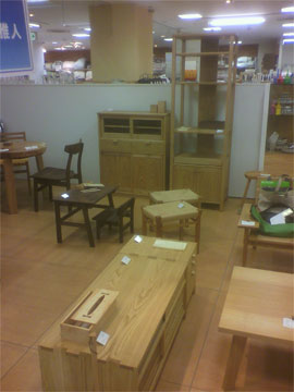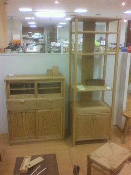 山本家具製作の持ち場。 クリ材を使用した家具たち |