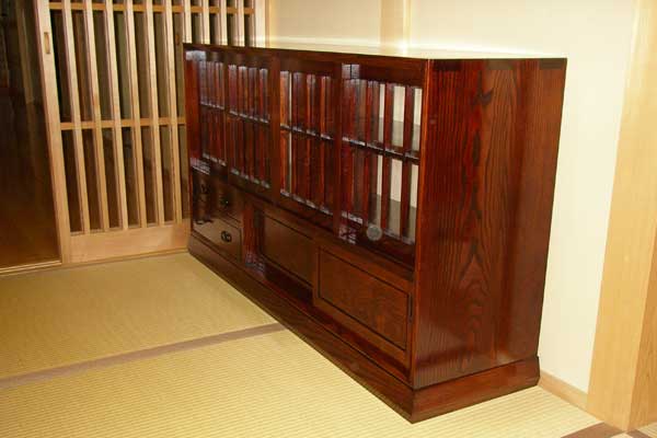 摺り漆の飾り棚